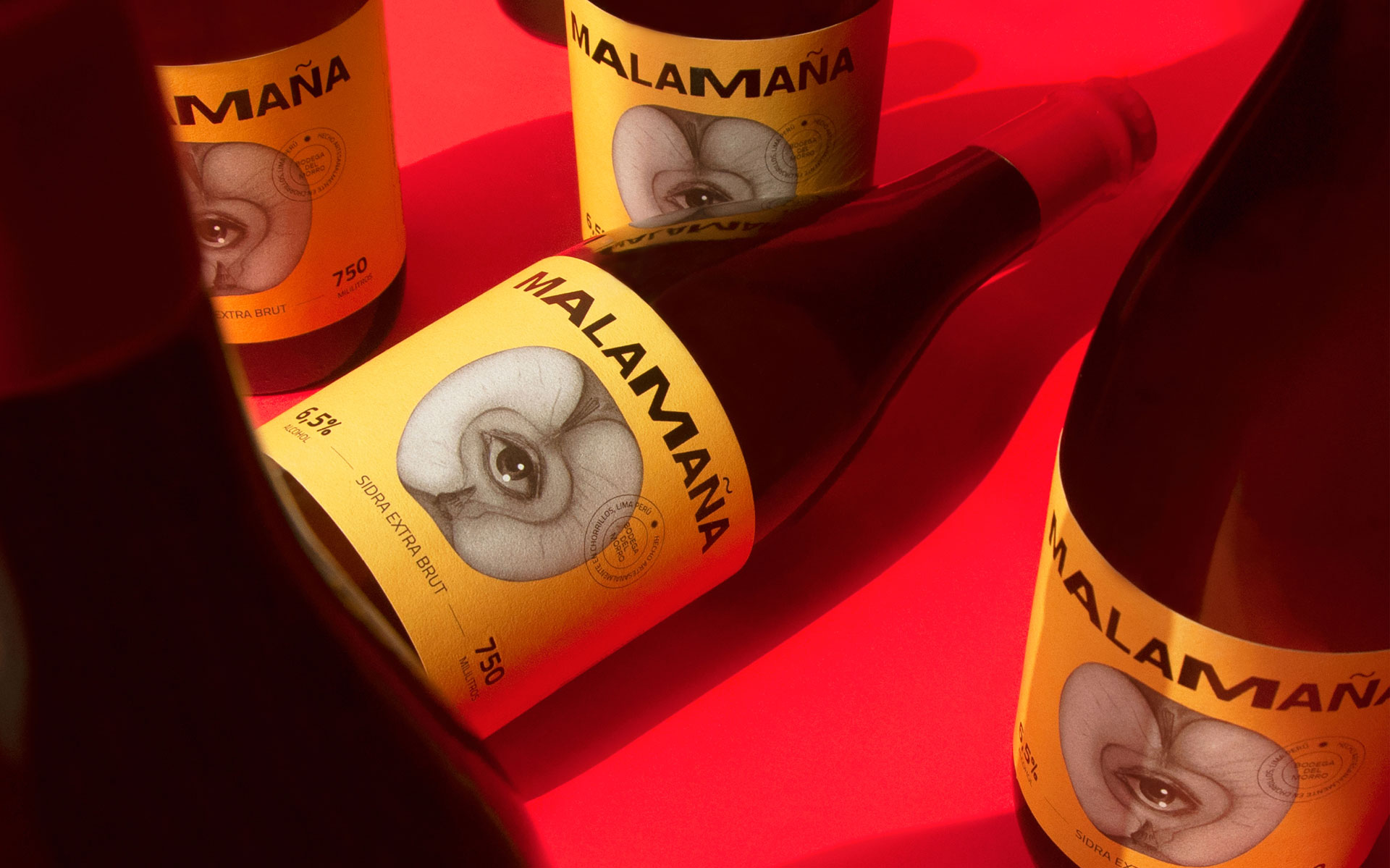 El mundo de las sidras suele ser bastante clásico y artesanal en sus presentaciones. Por eso, cuando Malamaña llegó a nosotros con su promesa de romper la tradición, trabajamos en una identidad que reflejara su frescura e irreverencia.